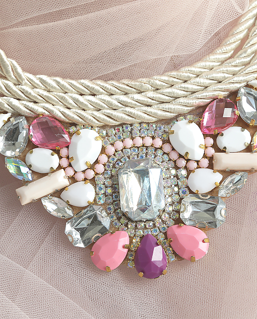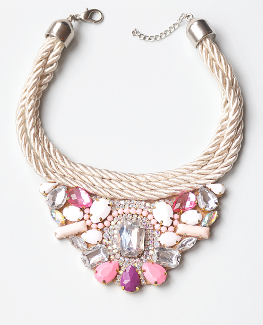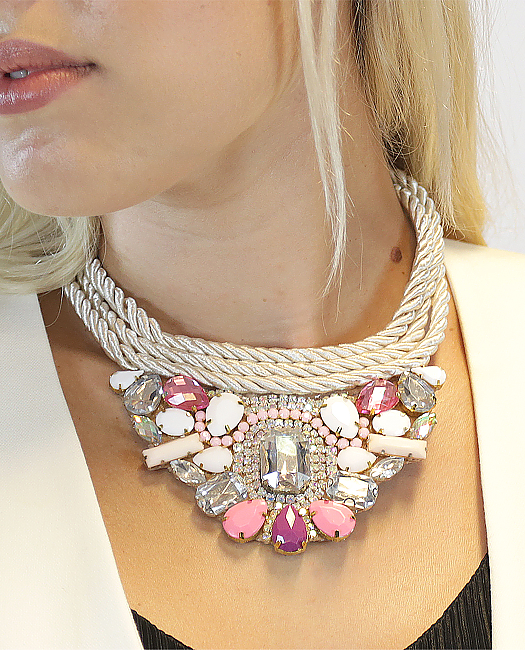 Een en al pracht en praal! Je komt geen aandacht tekort met deze statement ketting. De grote stenen gecombineerd met mooi glanzende koord is een echte eye-catcher. Prachtig bij een eenvoudig jurkje maar ook mooi bij een stoere look.