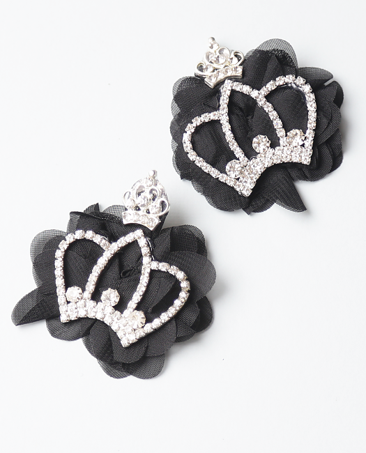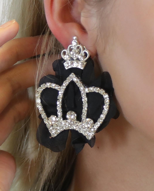 Luxe eigentijdse uitstraling maken deze oorbel onmisbaar in je kast. Door de zwarte kleur kun je deze oorbellen ook makkelijk combineren met je favoriete outfit! De prinsessenkroon afgewerkt op de bloemen geeft een chique uitstraling en zal je beslist laten schitteren. Deze oorbellen zijn voorzien van clips en zijn dus ook zonder gaatjes te dragen.